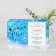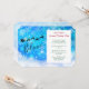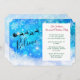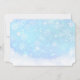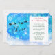 Convite de festas de Natal com uma silhueta preta de papais noeis cavalgando em seu trenó sendo puxado por sua rena voando pelo céu. Acredite que está escrito em uma fonte de script de tendência. O fundo é um design de floco de neve gelado azul gelado.