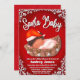 O bebê mais bonito está vindo para a cidade este inverno, celebrando o chá de fraldas com este encantador convite único. Para captar a época mais alegre do ano, um bebê fofo dormindo com Santa Cláusula que foi desenhado digitalmente elogiando flocos de neve, design de título e fundo vermelho