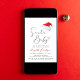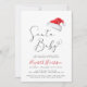 Um convite para o bebê durante um período de férias de Natal, que é muito bonito e mínimo, apresentando "Papais noeis Bebê" numa escrita elegante com um estopim cardíaco, uma ilustração com aquarelas do chapéu vermelho de Papai Noel e um convite para um pequeno e feliz borrifo de bebê. Personalize o nome da mãe em uma escrita na moda vermelha e os detalhes do chá em uma simples tipografia moderna.