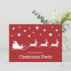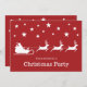 A design de uma silhueta branca festiva de Papai Noel num trenó com renas puxando-o para a frente. Acima delas estão algumas estrelas. A cor de fundo é vermelha. Personalize as áreas de texto de exemplo com os detalhes do seu evento.