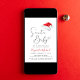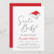 Um convite para bebês, o menor período de férias de Natal, de um casal de natal, com "Papais noeis Baby" em um roteiro elegante, com um inchaço cardíaco, uma ilustração de aquarela do chapéu vermelho de Papai Noel e um convite para uma feliz e um pequeno borrifo de bebê. Personalize os nomes da mãe e do pai em uma escrita na moda vermelha e adicione os detalhes do chá em uma simples tipografia moderna.