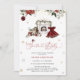 O Convite para Chá de fraldas de Bebê de Natal é um tema de celebração encantador e festivo, combinando a magia do Natal com a alegria de receber uma menina. No centro da design está um vestido de charmoso burgundy, que expele uma sensação confortável de feriado. O vestido é belamente embelezado com flores de inverno, acrescentando um toque de elegância sazonal e de charme de vinho natural. Outros elementos inspirados no Natal, como presentes envoltos, flocos de neve e ornamentos à volta da cena, criando um ambiente alegre e festivo. Itens correspondentes disponíveis.