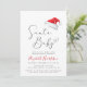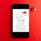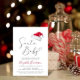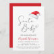 Um convite de chá de fraldas para a época de natal mínima e fofo, com "Papais noeis Baby" escrito em um roteiro elegante com uma batida cardíaca, uma ilustração aquática de um chapéu vermelho de Papai Noel e um convite para uma feliz de chá de fraldas. Personalize o nome da mãe em uma escrita na moda vermelha e os detalhes do chá em uma simples tipografia moderna.