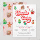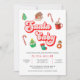 Papais noeis, Bebê! Este convite de chá de fraldas bonito apresenta fonte retrógrada do estilo 70s em tons de cor-de-rosa doce e vermelho-gota. A principal característica deste convite é a cor d'água pintada à mão, os doces de Natal apresentados na frente e no verso. É perfeito para um chá de fraldas de Natal.