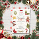 Este convite para chás de fraldas bonitinho "bebê papai noel" neutro em relação ao gênero apresenta um fundo creme com Papai Noel, Hollies, um homem de pão, estrela, boneco de neve, árvore de natal, cana-de-açúcar e estocagem em aquarela. O verso apresenta um fundo branco com padrão de verificação em vermelho. Personalize-o para as suas necessidades. Você pode encontrar produtos correspondentes na minha loja.