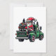 Papais noeis De Natal Gnomo No Convite Para Caminhões. Um Papai noel gnomo se agarrava a um pote enorme, balançando em um caminhão verde com a placa "CHRISTMAS", correndo para uma festa!