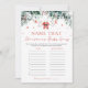 O nome de Natal dos Papais noeis Vermelhos Aquele jogo de natal de sintonia traz diversão festiva e alegria de férias para o seu chá de fraldas! Apresentando um belo design com roupas de bebê Papais noeis vermelhos, flocos de neve vermelhos delicados e eucalipto verde de inverno, este jogo desafia os convidados a adivinhar músicas populares de Natal com a palavra "bebê" no título. É uma atividade viva e interativa que captura o espírito de feriado aconchegante, adicionando risos e um pouco de competição amigável enquanto todos testam seu conhecimento musical. Perfeito por comemorar sua chegada com uma reviravolta agradável e sazonal!