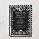 Este belo papel picado inspirou um design de convite de casamento que apresenta um quadro de ornamentado em branco, um fundo preto chic e uma tipografia moderna. Esta elegante, porém moderna design é uma escolha fabulosa para um casamento de Latinx ou para o casamento de destino do México. Você pode personalizar este design ainda mais adicionando uma foto ou texto adicional ao backer. Veja mais na coleção acima...