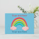 Desenhos coloridos de arco-íris e nuvens rosa. Imagem digital. Convites personalizados para chuveiros para bebês Edite texto na parte frontal e traseira da placa para personalizá-lo.