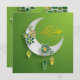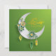 Convite para comemorações de Iftar ou Eid para Ramadã. Papel cortado design com lanternas Ramadã, flores e lua crescente em amarelos e verdes.