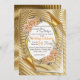 Um cartão de ouro elegante, com cantos de ouro voadores e rosas de ouro, para um cartão de anúncio