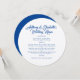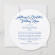 Modelo do menu recepção de casamento redondo. O texto azul do marinho é fácil de personalizar em dois locais. Texto azul escuro no topo do título que inclui nomes da noiva e do noivo/casal. O texto azul impresso para as refeições é definido como um parágrafo. Use letras maiúsculas e espaços, conforme necessário, para ajustado do seu texto. A amostra é mostrada em papel kraft bronzeado com outro papel disponível.