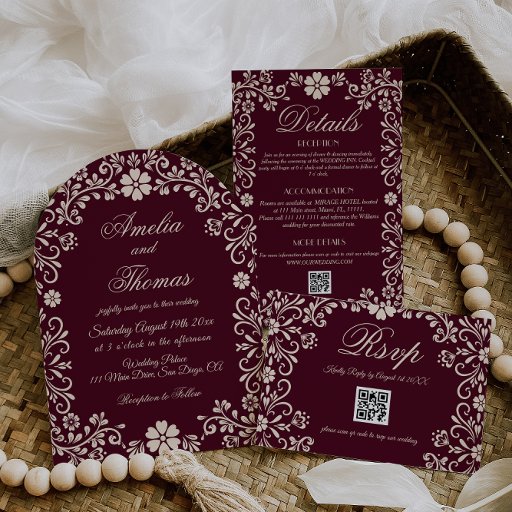 Convites Papel Picado Burgundy Red Mexican Wedding