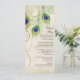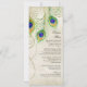 PALETA DE CORES: Preto, bege, creme, dourado, azul, verde e roxo. COLEÇÃO DE DESIGN: Cartão de menu de jantar de recepção ou evento formal correspondente. Esta é parte de Conjuntos de Convites de Casamento de produtos correspondentes completos. Estes Convites de Casamento de Penas de Pavão modernos e contemporâneos são modernos, elegantes e sofisticados. A arte é de arte original em aquarela pintada à mão por Audrey Jeanne Roberts. Há um fundo de renda texturizada, manchada de chá, envelhecida, estilizada, penas de pavão modernas e uma borda lateral de cor correspondente. No verso está o texto do convite de casamento personalizado, um conjunto de penas de pavão com floreios de espiral desenhados à mão em bege e um padrão damasco sutil de desenho de linha caligr
