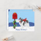 Natal com Papillon. Celebrar a temporada com este Papillon levando seu correio de férias para a caixa de correio vestindo seu lenço vermelho de tricô e percorrendo a neve