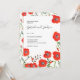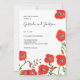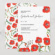 Convite de casamento minimalista moderno com papoulas vermelhas florais com padrão de papoula no verso.