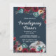 Esta design de outono apresenta abóbora cinza, com flores de marinho de vinho vermelho-queimado quente e flores de cor aquosa e folhas sobre fundo azul marinho. Apresenta um bonito design de tipografia escrita à mão. Note que este design é um efeito fotográfico impresso. 3342
