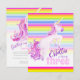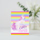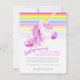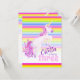 aniversário de 3 anos, com uma pintura de cor d'água de unicórnio branco e colorida e listras coloridas do arco-íris. Personalize com seus próprios detalhes de festa de aniversário, lê-se atualmente, Estella está fazendo três anos. Gallop em cima. Desenho único, pintura aquosa e design gráfico por Sarah Trett www.sarahtrett.com para www.mylittleeden.com
