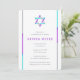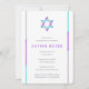 Simples e moderno Bat Mitzvah convites com estrelas de David design com sotaques roxos, lacrimejantes e prateados. Personalize online com seus detalhes Mitzvah.