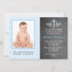 Menino Quadro de Quadrinhos Foto do Batismo Convites Azul Damasco