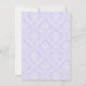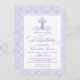 Meninas roxas convidam batismo com cruz de pérolas roxas e roteiro elegante em um bonito fundo de damasco de lavanda. Este elegante convite para batismo roxo e damasco roxo de lavanda é facilmente personalizado para o seu evento simplesmente adicionando os seus detalhes no estilo de fonte e na cor e na redação da sua escolha.