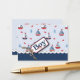 Cores náuticas em veleiros clássicos, vermelhos, brancos e azuis, com âncora e caranguejos, e uma nova etiqueta de 3D com um fio.