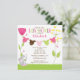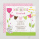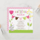 Comece seu chá de fraldas com nosso doce convite para chá de fraldas de roupa de bebê. Nosso convite para chás de fraldas para meninas mostra um coelho bonito sentado em um gramado com flores rosa e amarelas com uma linha de tecido. Coordenando bolinhas cor-de-rosa de volta. Visite nosso compro por correspondência obrigado cartões de nota, autocolantes e selos de correio Os fatos para bebês são © Erin Bradley Designs