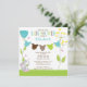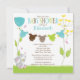 Comece o chá de fraldas do seu filho com o nosso convite para chás de fraldas de roupa de camisa de bebê. Nosso convite para chás de fraldas para meninos apresenta um coelho bonito sentado em um gramado com flores azuis e amarelas com uma linha de roupa com roupas de bebê marrom, verde limão e azul. Coordenando bolinhas cor-de-rosa de volta. Visite nosso compro por correspondência obrigado cartões de nota, autocolantes e selos de correio Os fatos para bebês são © Erin Bradley Designs