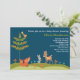 Convidado adorável que é perfeito para festas e chás de fraldas temáticos da floresta. Possui raposa, veado e coelho em fundo azul profundo.