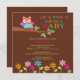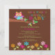 Comece seu evento com nosso convite de Chá de fraldas de coruja com a mais doce coruja mãe sentada em um ramo de árvore com uma coruja de bebê colocada sobre um fundo marrom de chocolate. Nosso convite para chás de fraldas de coruja moderno e colorido apresenta corujas cor-de-rosa, azul-turquesa, verde limão, laranja e bolinhas. Perfeito para o chá de fraldas da coruja. Apenas personalize com suas informações e você está pronto para ir! Itens correspondentes, incluindo chás de fraldas postais, adesivos de favoritos, cartões de agradecimento e obrigado que você também está disponível em nosso compro. © Dreamlike Magic