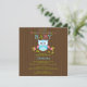 Comece o seu evento com o nosso convite para Chás de fraldas de coruja giro apresentando a mais doce coruja sentada num galho de árvore verde limão com flores cor-de-rosa sobre um fundo marrom de chocolate. Nosso convite para chás de fraldas de coruja moderno e colorido apresenta um fundo de coruja único. Perfeito para seu chá de fraldas de tema coruja para um chá de fraldas de menina, chá de fraldas de menino ou chá de fraldas neutro em sexo. Apenas personalize com suas informações e você está pronto para ir! Itens correspondentes, incluindo chás de fraldas postais, adesivos de favoritos, cartões de agradecimento e obrigado que você também está disponível em nosso compro. © Petit Tatti