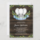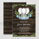 design de convite para chá de fraldas de elefantes de menino bonito apresentando um fundo de madeira rústico com ilustrações de aquarela. As folhas verdes da moda são galhadas com bagas azuis e uma aquarela azul. É uma faixa para Garoto, faça disto um convite para chás de fraldas na moda.