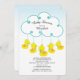 Um convite para chá de fraldas de borracha, bonito, apresentando uma nuvem branca com adoráveis patos amarelos de garotinho em um fundo azul-ombre. Sacudir nosso chá de fraldas moderno e contemporâneo convida a ver um plano de fundo correspondente para um toque especial extra. Escolha perfeita para um chá de fraldas. Adorava este esquema de design? Visite nosso compro para ver outros temas populares de chá de fraldas.