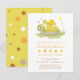 Segure uma chá de fraldas para a mamãe estar com este convite bonito, colorido, moderno e na moda! Este convite para chás de fraldas de tartaruga tem uma tartaruga mamãe deitada numa pedra. Ela tem uma flor na cabeça. Uma pequena tartaruga bebê com uma cor de casca amarela mais brilhante está deitada em cima dela. A mãe e a criança estão tão bem juntas com corações e expressões felizes. O fundo é o de um lago. A cor é neutra em termos de gênero e é adequada tanto para os bebês como para as raparigas. Personalize facilmente com os detalhes do seu partido.