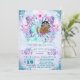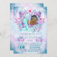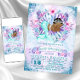 A afro-americana é convidada para um chuveiro de bebês com adorável sereia étnica cortada em pérolas em um lindo azul roxo e lacrimejo sob o fundo do mar com cavalos marinhos e conchas marinhas. Estes convites para o chá de bebê afro-americano são facilmente personalizados para o seu evento simplesmente acrescentando os seus detalhes. Este é um design impresso sem brilho real.