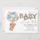 Um ursinho de peluche de ursinho de bezerro de ursinho convoca um ursinho bonito com balões personalizados para um garotinho. Crie e personalize rapidamente o seu Chá de fraldas, azul-claro e convite branco. Clique no botão "Personalizar!" para alterar o tamanho do texto, a cor do texto, o estilo da fonte e muito mais!