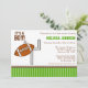 Um convite para chás de fraldas de futebol em tons de verde, marrom e branco. Perfeito para um chá de fraldas desportivo temático. Personalize facilmente a sua festa! Ilustração por © Sanqunetti Design