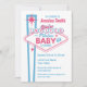 Nossos fabulosos convites para o chá de bebê cor-de-rosa e azul parecem o sinal de boas-vindas de Las Vegas mas dizem que VOCÊ É CONVIDADO PARA UM CHÁ DE FRALDAS FABULOSO. Pés bonitos de bebês completam a design. Texto, plano de fundo e posicionamento de imagem totalmente personalizáveis. Também estão disponíveis selos, autocolantes, T-shirts e presentes coordenados. PinkInkArt original!