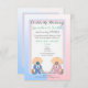 Nada é mais especial do que o anúncio de gêmeos. Estes convites para bebês gêmeos desenhados para um menino e meninas são perfeitos para os novos pais esperados. Personalize e personalize com os nomes dos pais, data e local do chá. Projetado em cor-de-rosa e azul pastel com bebês em pijamas e binkies. Também pode ser personalizado como um convite de revelação de chá de fraldas.