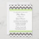 Convites personalizados para bebês em limão elegante e moderno verde de maçã, cinza de carvão escuro e padrão de chevron zigzags branco. Personalizável com seu texto, entre em contato conosco para solicitar uma alteração de cor.