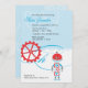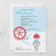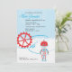 Um convite para chás de fraldas personalizável de querido com um robô azul e vermelho. cartões de agradecimentos e bengala.