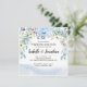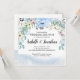 Flores de aquarela e lavagens ainda são dois dos designs de casamento mais populares. Eu os usei para criar este convite para o brunch floral azul com um mosto de água azul. O topo do convite de brunch de casamento em forma quadrada contém uma bela mostra de flores azuis, amarelas e cor-de-rosa aninhadas em verde-luxuoso. Uma simples lavagem com aquarela azul esbarra na parte inferior. O resultado é um design de aquarela azul, aberto e arejado. Fácil de personalizar.