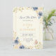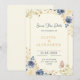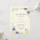 Celebre sua história de amor com este elegante convite para casamento floral! Apresentando flores de cor azul e dourada, delicados sotaques botânicos, e tipografia graciosa com script, este design cria uma atmosfera romântica eterno. Perfeito para casamento moderno ou clássico, este convite é totalmente personalizável com seus nomes, data e local. Impresso em papel de qualidade superior, é ideal para compartilhar seu dia especial de estilo.