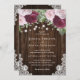 Este convite de casamento apressado, com flores de burgundy e blush, madeira de celeiro e renda rústica é perfeito para convidar seus convidados para a sua festa de casamento rústica e rosa. design totalmente personalizável. Itens correspondentes disponíveis.