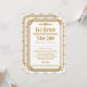 Estes convites para casamento apresentam uma paleta de cores branca e dourada, uma estrutura geométrica, padrões geométricos e outros detalhes estilísticos, todos inspirados na Arte Deco e nos vinte anos ruidosos. Você pode personalizar os campos de texto de exemplo de acordo com o seu gosto.