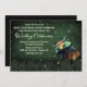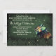 Mason Jar Rustic Firefly Wedding Invitations. Apresenta um vidro semelhante à vida com vagalumes cercados por lâminas de grama sobre fundo verde.