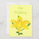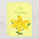 Linda pintura de um lírio amarelo, com Nosso Casamento, sobre convites de casamento que devem ser personalizados. Altere facilmente o texto nos formulários do modelo ou, para fazer outras alterações, clique em Personalizar. Para escolher uma cor de plano de fundo diferente, clique em Personalizar, em Editar, em Plano de Fundo e, em seguida, na cor escolhida. Compro de Convites de Casamento Correspondente; Guardar a data Postcards, Stickers and Magnets; Carimbos de casamento; Gravatas; Selos De Casamento; e Bolsas de noivas monogramas: