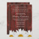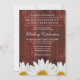 Red Barn Wood Rustic Daisy Wedding Invitations. Apresenta um fundo de madeira vermelho e marrom com marrom rústicos margaridas no fundo.