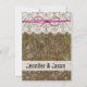 Esses convites únicos de casamento de camo apresentam um fundo de camuflagem com um local impresso embelezado no topo do convite e um arco de fio rosa quente impresso. A fonte é uma fonte especial que parece ter buracos, como se fosse parte do design de camuflagem. Esses convites de caça são de cor de cheio de ambos os lados. Os fundos também têm o design de camo e os nomes da noiva e do noivo. O arco de renda e fio são apenas designs impressos, não tecido de renda real ou fio real. Isso lhe dá a aparência de um convite em camadas, mas com o desconto de preço de um convite impresso simples. Apenas insira o convite para o modelo.