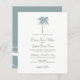 Trinta Tropical De Palma Azul Com Poeira De Orçamento Destino Convites De Casamento Com Ondas Oceânicas De Volta. Cartões de Convite para Casamento de Praia Elegante